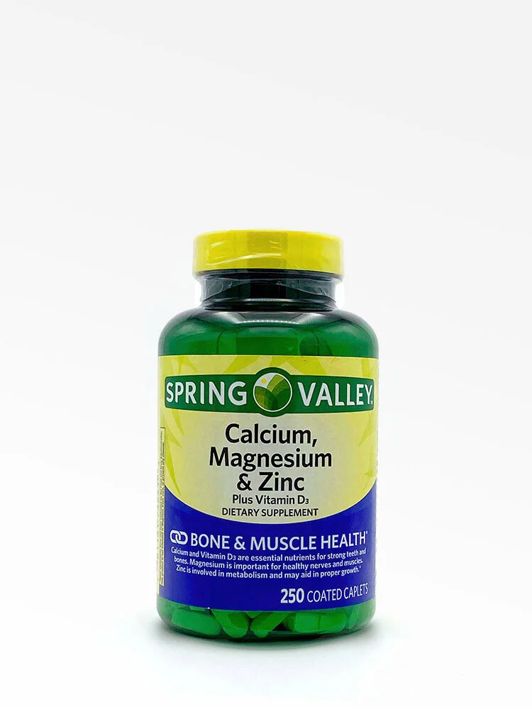 ¡Apoye sus huesos y músculos con las cápsulas recubiertas de calcio, magnesio y zinc + vitamina D3 de Spring Valley!