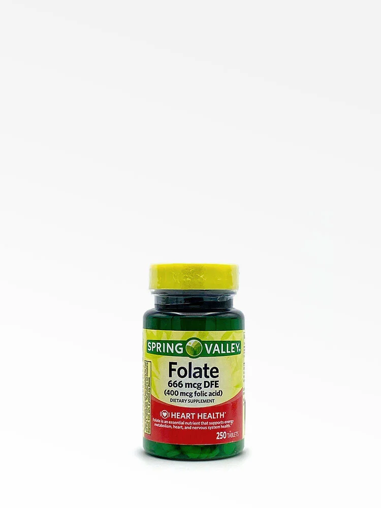 Spring Valley entiende que llevar un estilo de vida saludable y equilibrado es la clave para ser lo mejor que pueda. Con una gama asequible de productos inspirados en la naturaleza, Spring Valley apoya la salud y el bienestar integral de usted y su familia. El ácido fólico es una vitamina B importante que tiene muchos beneficios para la salud. El ácido fólico de Spring Valley es una excelente manera de satisfacer sus necesidades diarias de esta vitamina esencial, que contribuye a la salud del corazón y el sistema cardiovascular. Los hombres y las mujeres de todas las edades necesitan esta vitamina B para el metabolismo energético y el apoyo del sistema nervioso, pero el ácido fólico es especialmente vital para las mujeres embarazadas. Las dietas saludables con una cantidad adecuada de folato pueden reducir el riesgo de que una mujer tenga un hijo con un defecto congénito del cerebro o de la médula espinal.