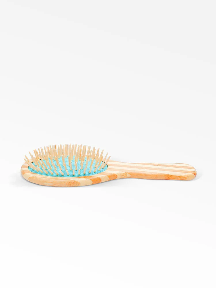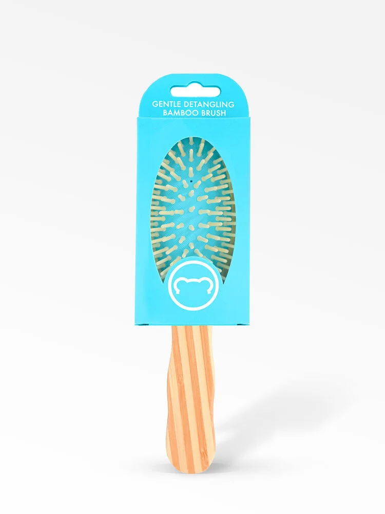 Está hecho con bamboo y las cerdas son libres de plástico, pero suficientemente redondeadas y gentles para masajear tu cuero cabelludo y ayudar a distribuir los aceites naturales hasta las raíces.