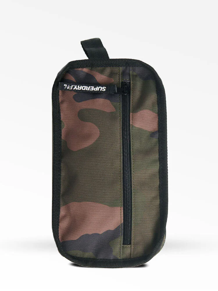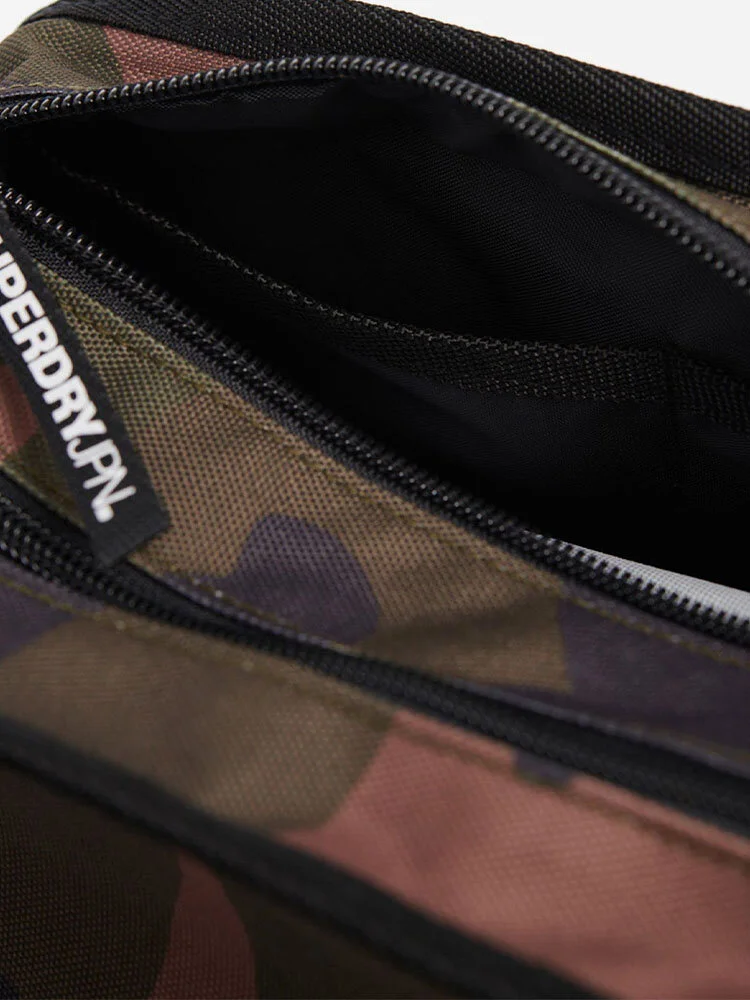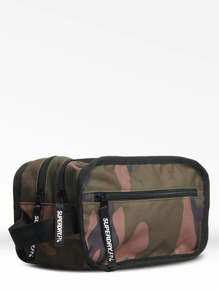 Neceser con doble cierre para hombre. Incluye dos compartimentos con cierre, uno con un bolsillo interior de malla y otro con dos bolsillos extras. También incluye una pequeño compartimento con cierre en la parte posterior y asa lateral de agarre. Se completa con el logo de Superdry con textura en la parte delantera.