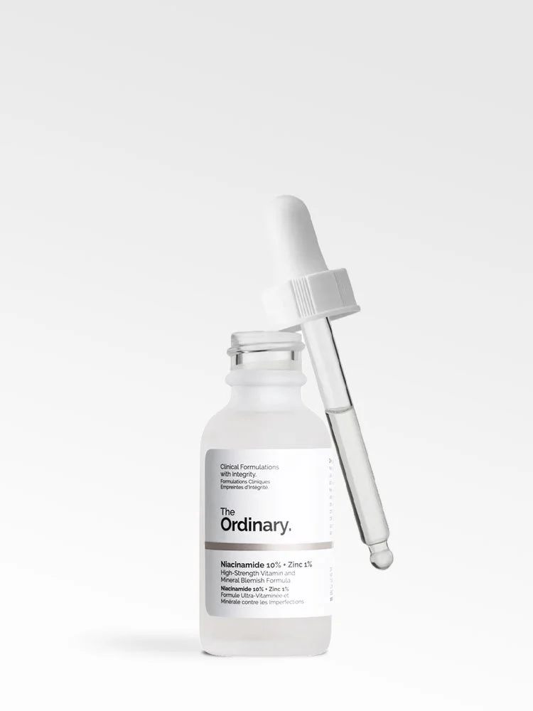La Niacinamida, entre sus múltiples maravillas, reduce los poros dilatados, elimina las marcas del acné, previene nuevos brotes e iguala el tono de la piel. Y el Zinc,(este maravilloso mineral de los dioses), es súper importante por su poder antioxidante, porque regula las glándulas sebáceas y porque ayuda a cicatrizar el tejido.