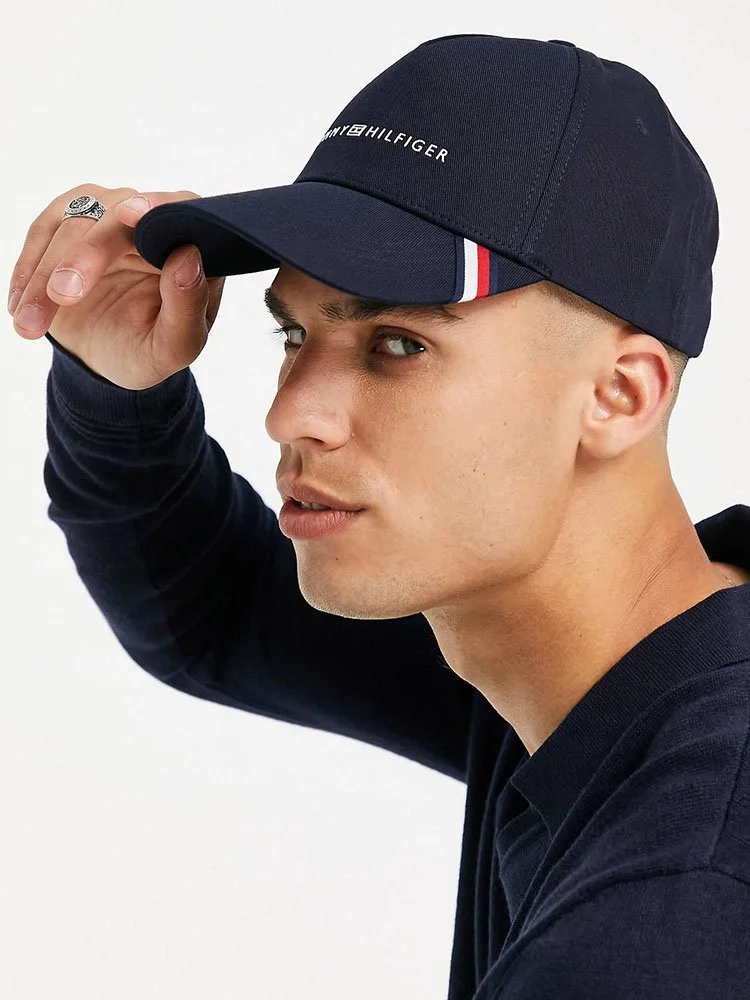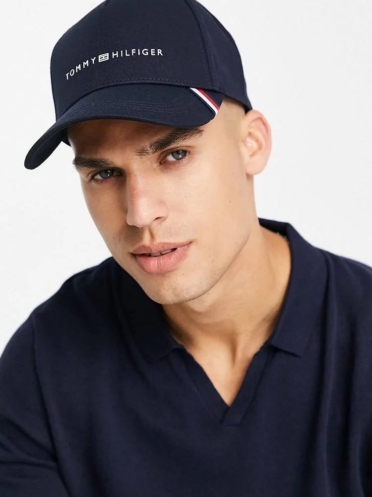 Gorra de Tommy Hilfiger con corona de paneles, ojales de ventilación transpirables y logotipo impreso en la parte delantera.