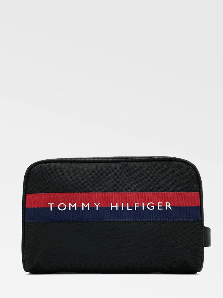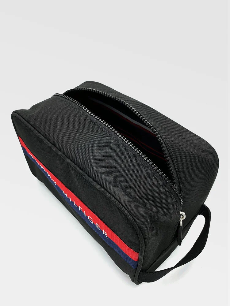 Neceser para hombre. Incluye dos compartimentos con cierre, uno con un bolsillo interior y otro con dos bolsillos extras. También incluye una asa lateral de agarre. Se completa con el logo de Tommy Hilfiger en la parte delantera.