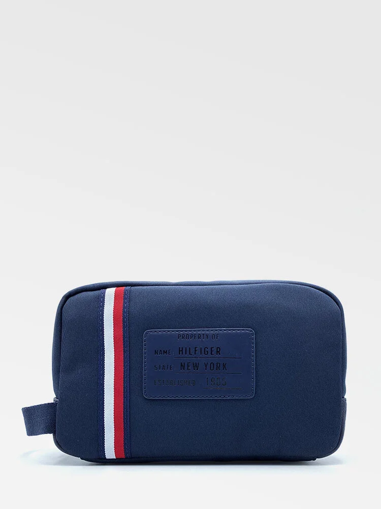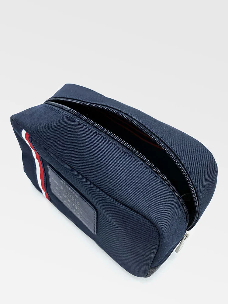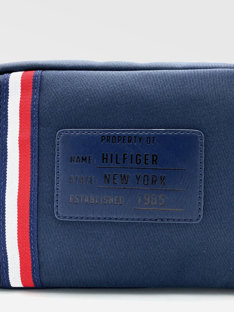 Neceser para hombre. Incluye dos compartimentos con cierre, uno con un bolsillo interior y otro con dos bolsillos extras. También incluye una asa lateral de agarre. Se completa con el logo de Tommy Hilfiger en la parte delantera.