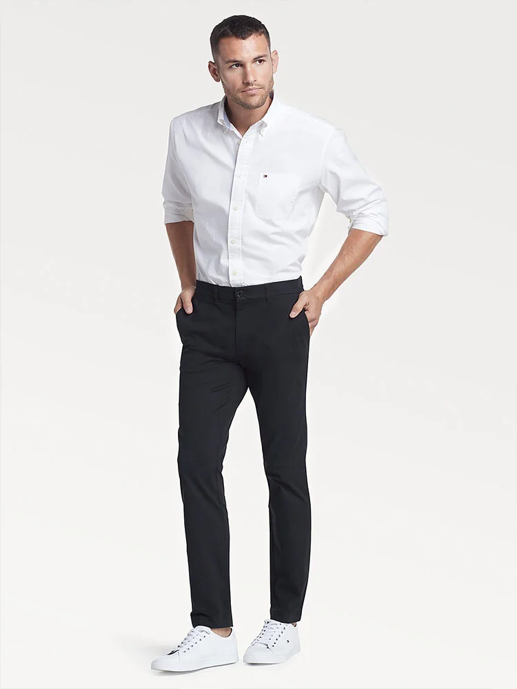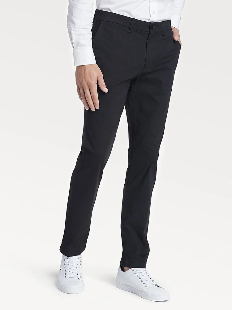 Estos pantalones de vestir de corte slim combinan un tejido resistente de algodón con una ligera dosis de elasticidad para que puedas moverte con total comodidad sin renunciar al estilo.