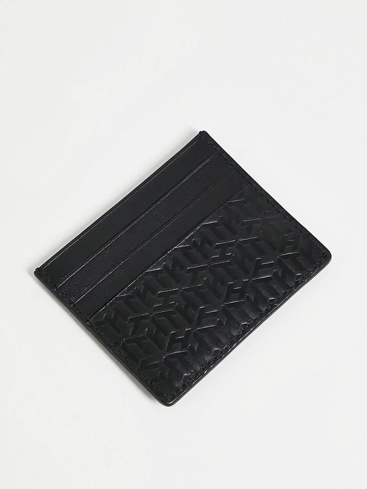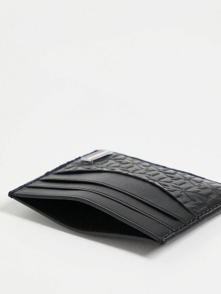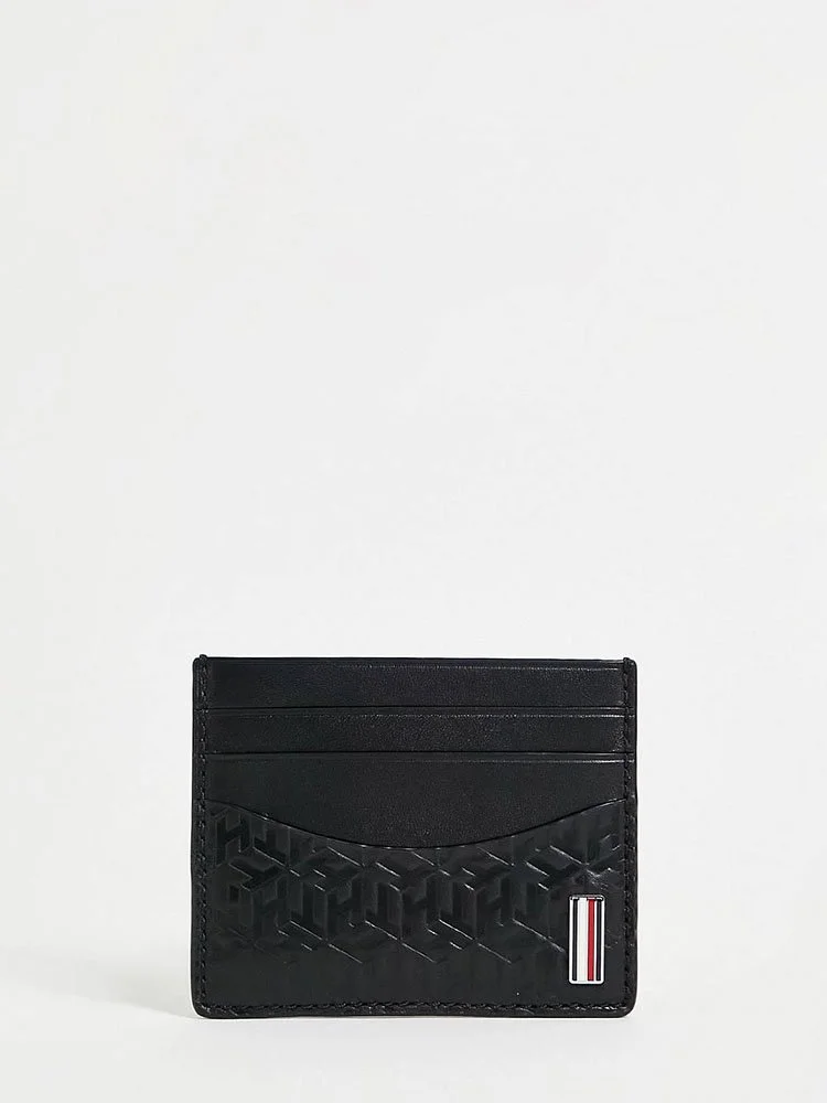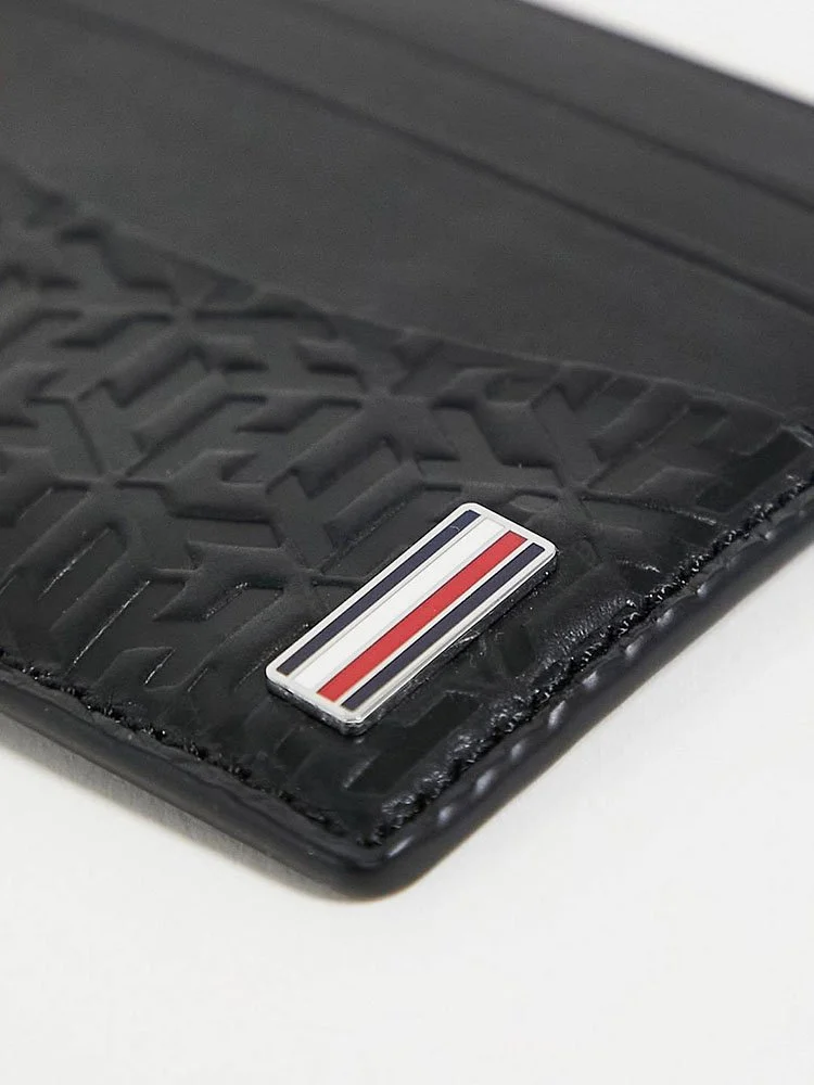 Tarjetero de la marca Tommy Hilfiger con diseño de monograma, múltiples compartimentos y detalle de placa con logo.