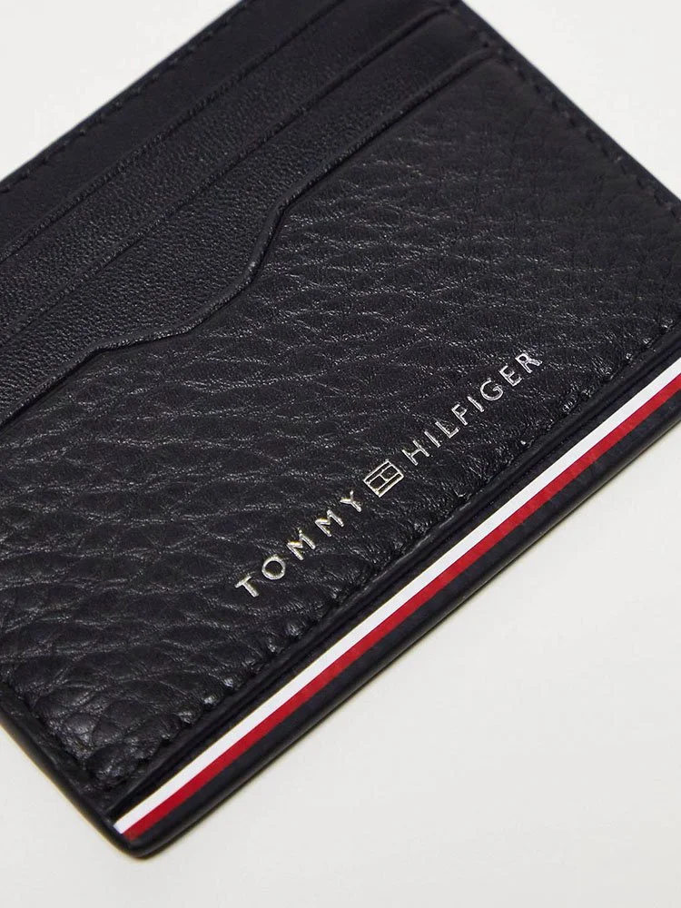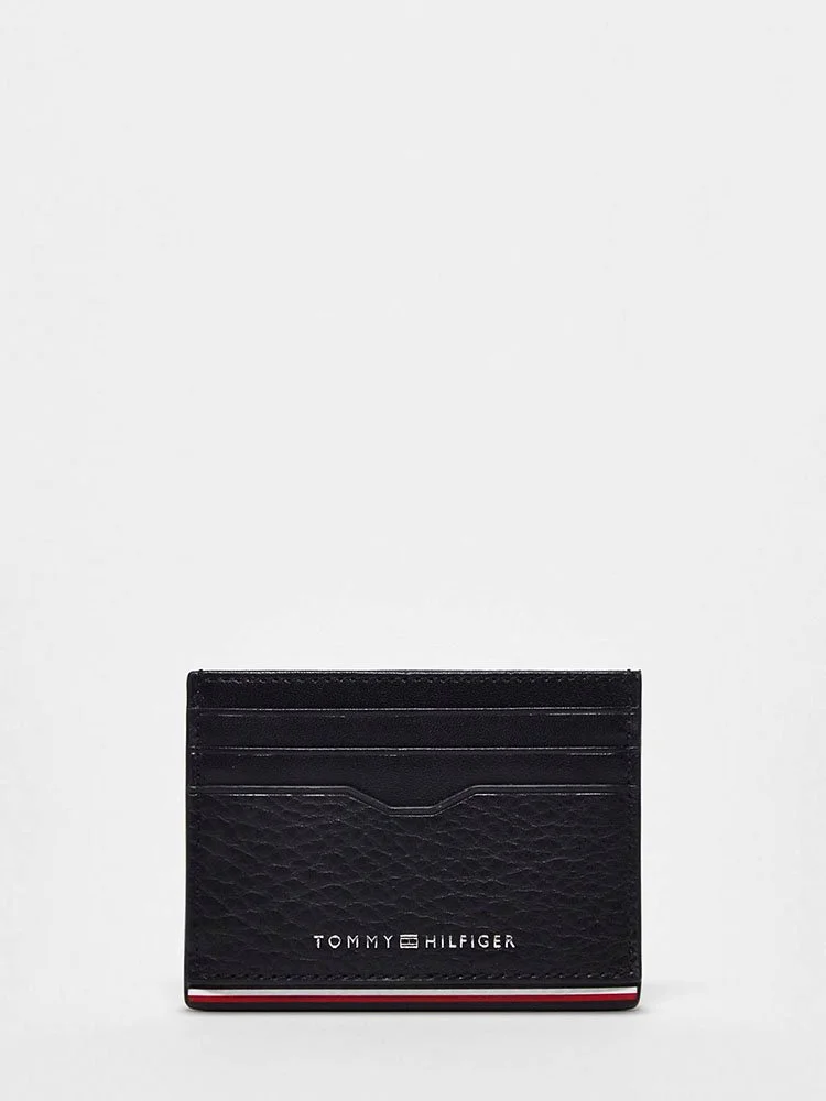 Este tarjetero de diseño minimalista, confeccionado en cuero, luce un sutil logo de Tommy Hilfiger en una de las caras.