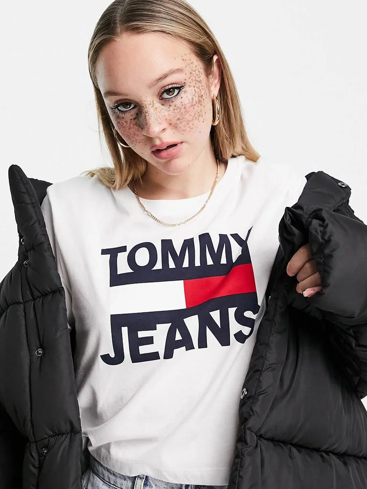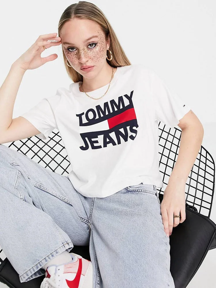 T-Shirt de Tommy Jeans con cuello redondo, manga corta y estampado de logotipo en el pecho y la manga.