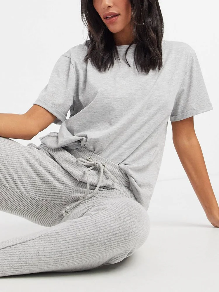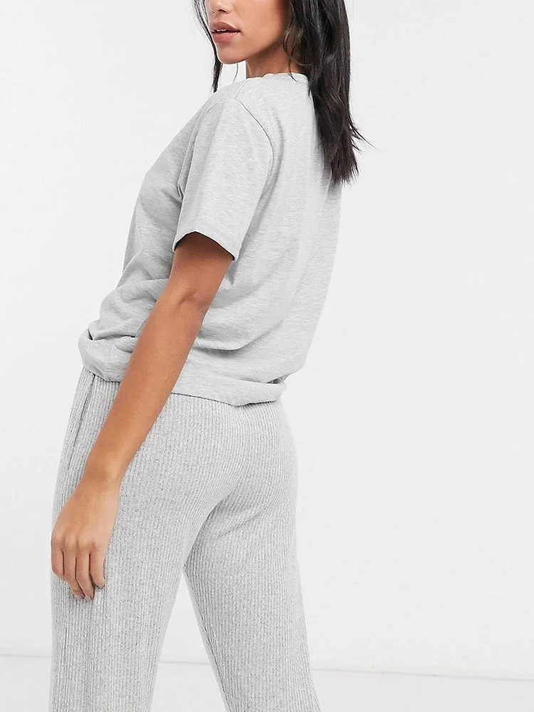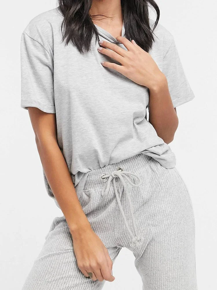 Top de pijama con diseño liso, cuello redondo, hombros caídos, ajuste relajado y corte holgado.