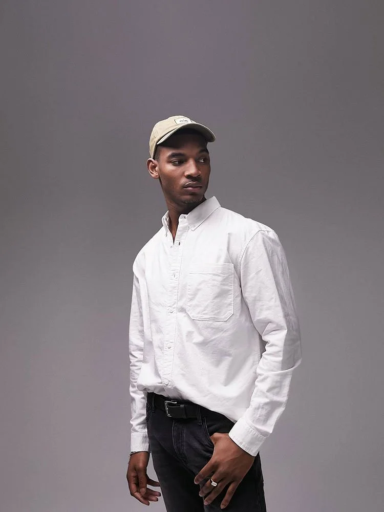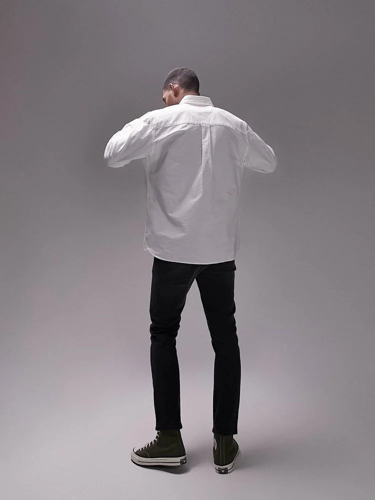 Camisas de Topman con cuello abotonado, cierre con botones, bolsillo en el pecho y puños abotonados.