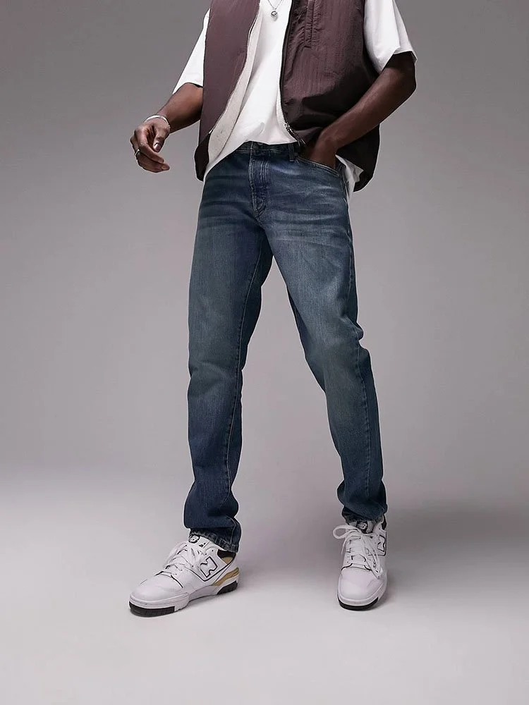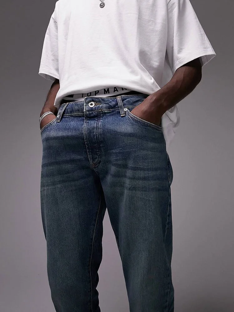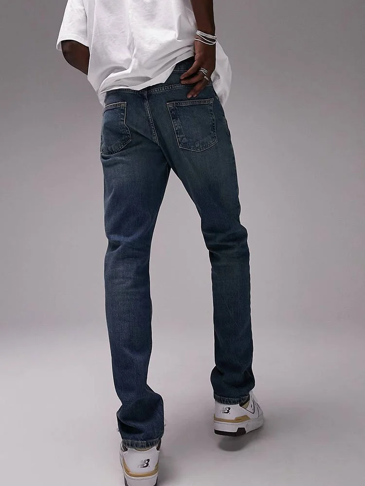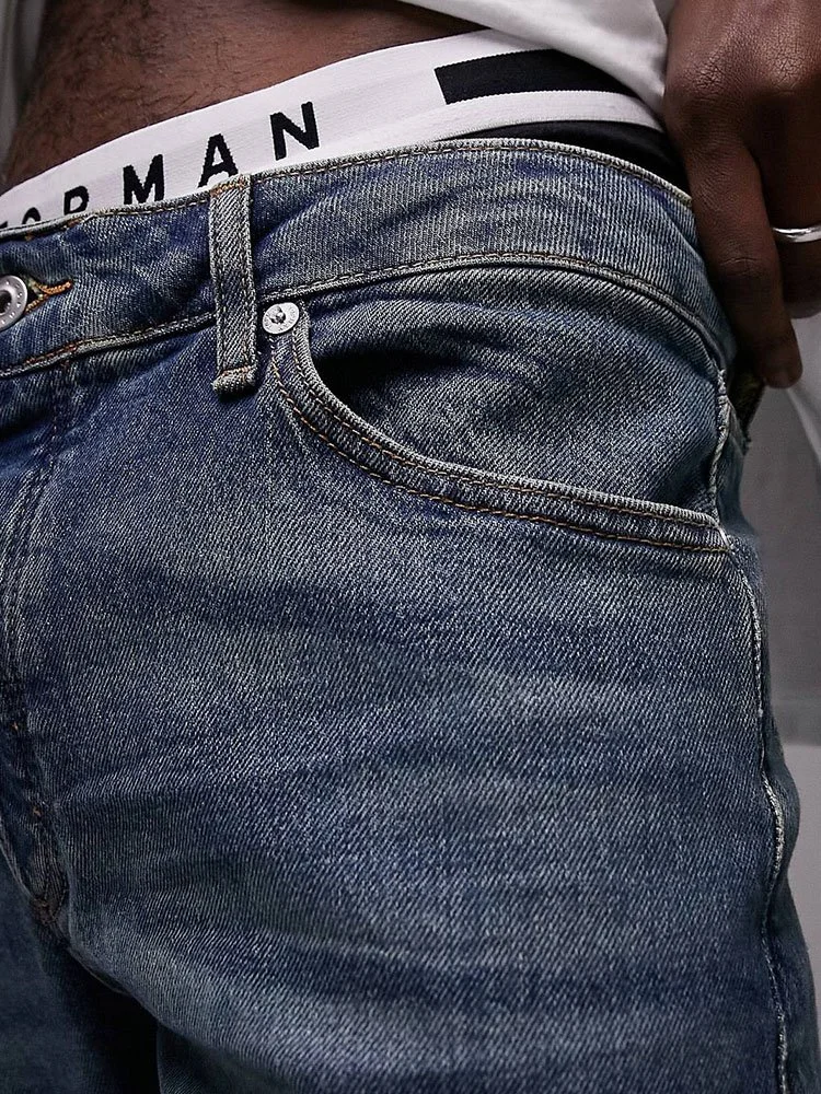 Jeans de Topman con corte slim en tejido elástico, talle estándar, trabillas para cinturón y bolsillos funcionales.