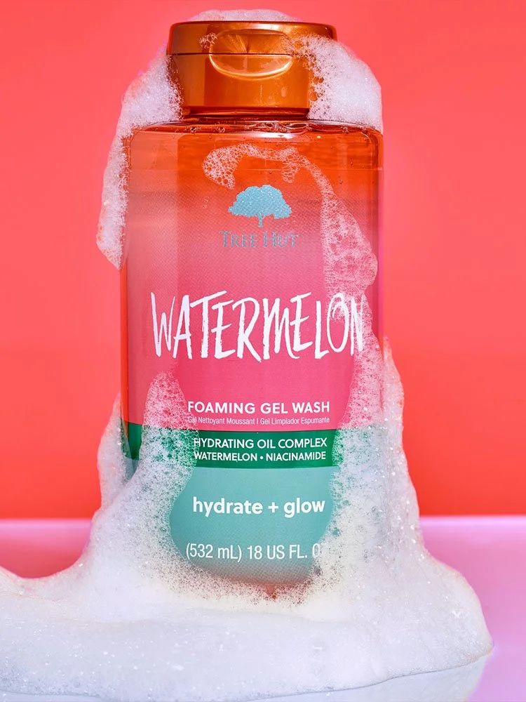 Refresque su rutina de ducha con el Gel Espumoso Limpiador de Tree Hut, con el agradable aroma de patilla. Sumerja su cuerpo en una lujosa espuma que nutre la piel y deja un aroma duradero. Los jabones líquidos de Tree Hut contienen un complejo de aceites hidratantes de aguacate, kiwi y naranja ricos en antioxidantes, para que salga de la ducha con una sensación de frescor y luminosidad. ¡Brillo garantizado!