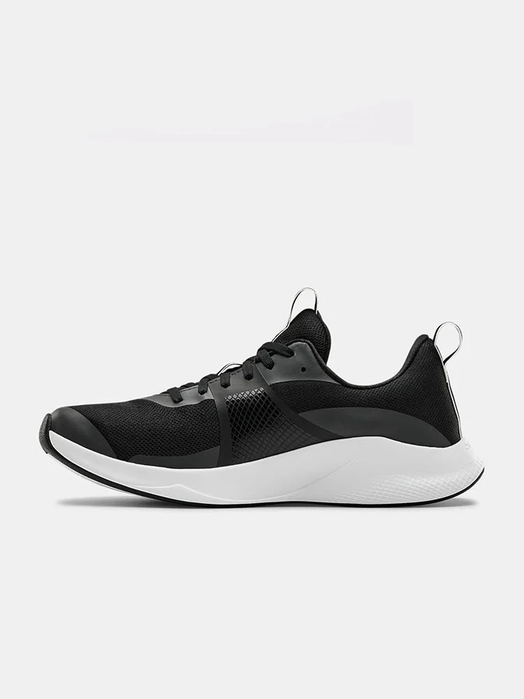 Diseño específico para mujer con un ajuste estilizado con parte superior ligera y transpirable para ofrecer frescura y transpirabilidad. Revestimientos de TPU estratégicos para una mayor estabilidad en la zona media, un ajuste firme y una mayor durabilidad. Mediasuela Charged Cushioning® que utiliza espuma moldeada de compresión para ofrecer la máxima durabilidad y reactividad. Suela exterior de goma completa para ofrecer la máxima durabilidad con un patrón de tracción multidireccional.