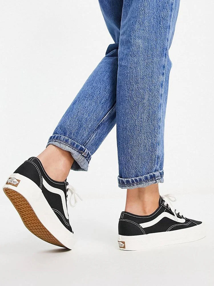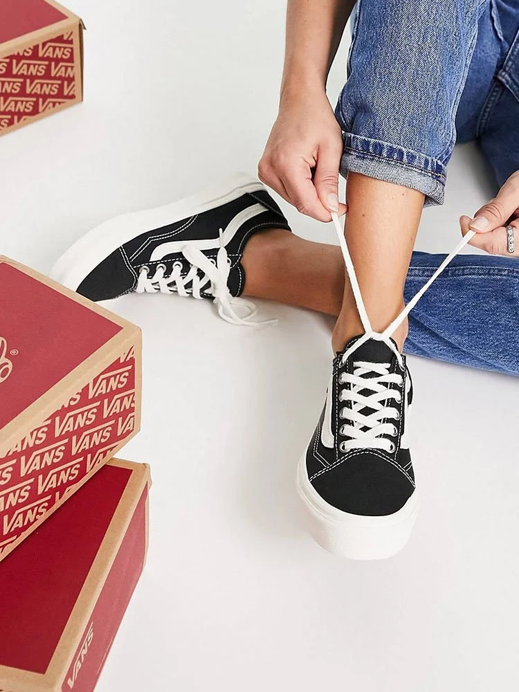 Estas zapatillas deconstruidas con cordones también ofrecen una silueta más esbelta y ajustada que las tradicionales Old Skool. El diseño se completa con ojales de metal y cordones de cáñamo renovables.
