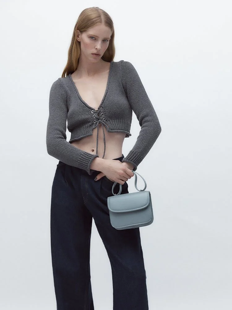 Bolso de la marca Zara, con formato bandolera con solapa. Asa de mano doble y asa función bandolera ajustable y extraíble. Cierre mediante imán.
