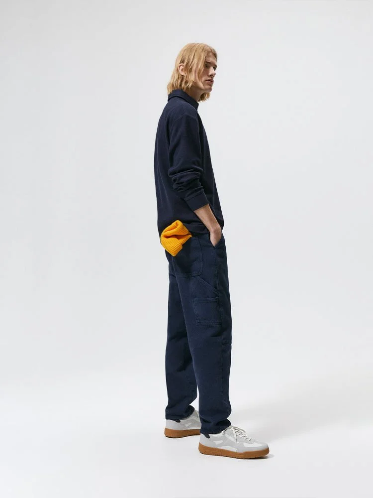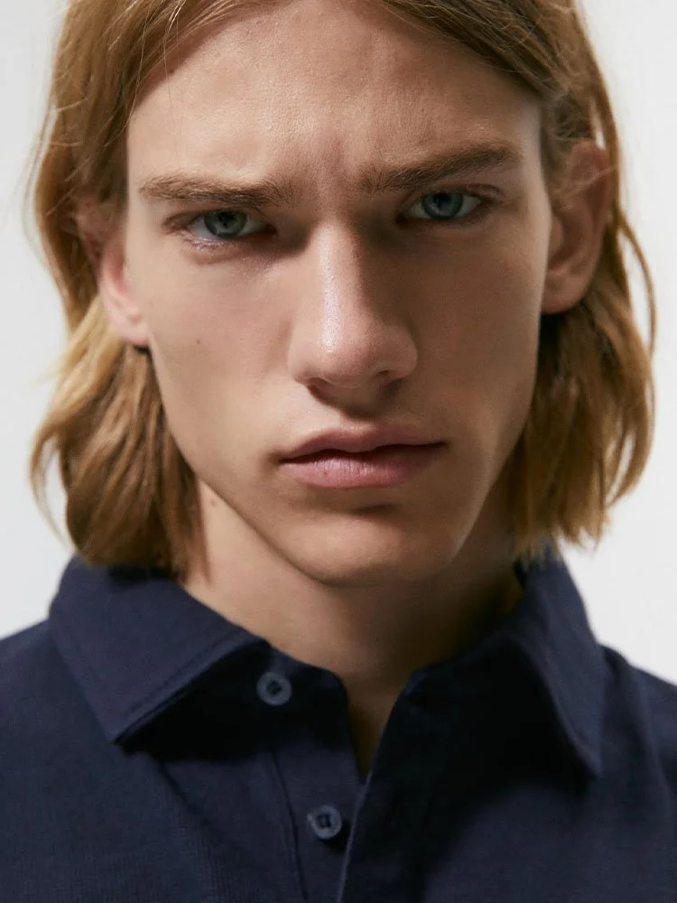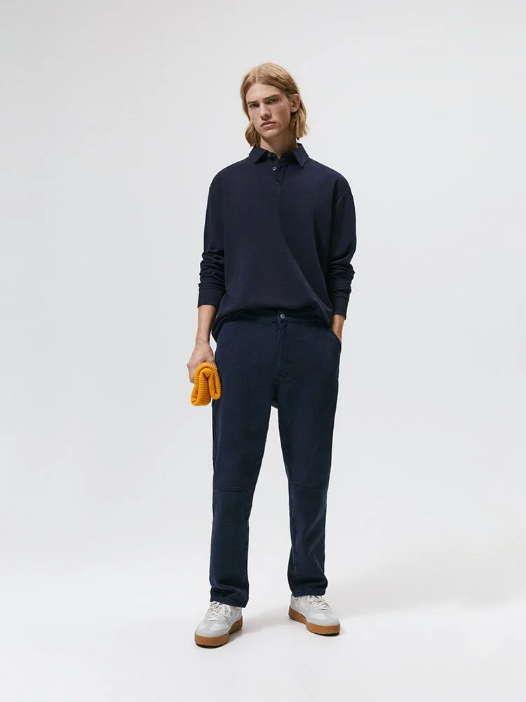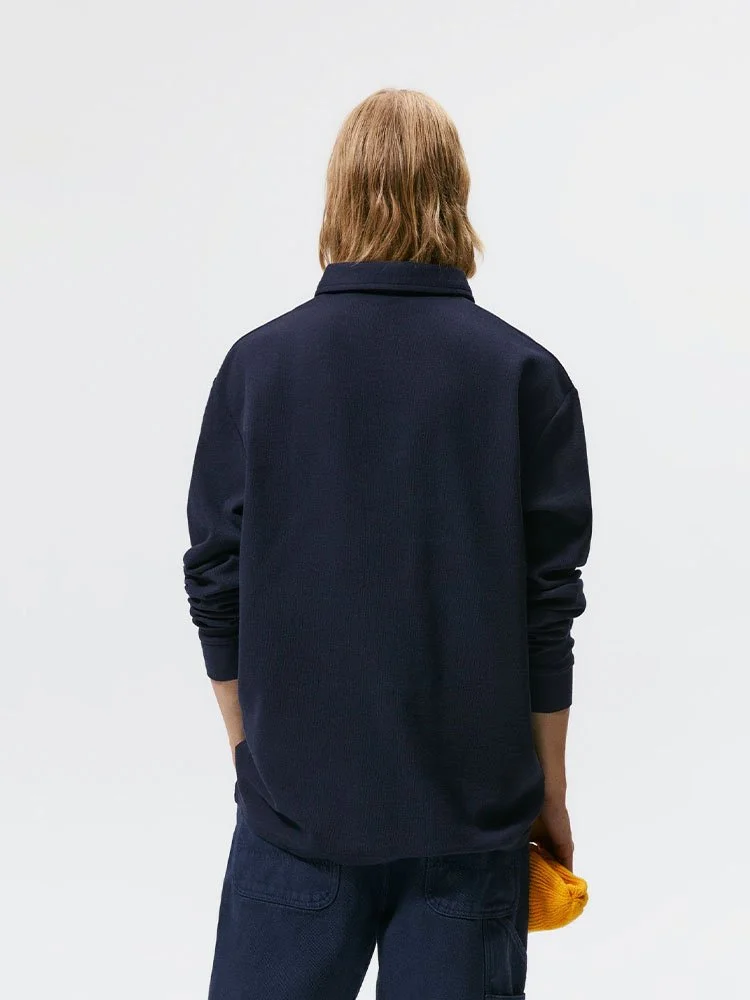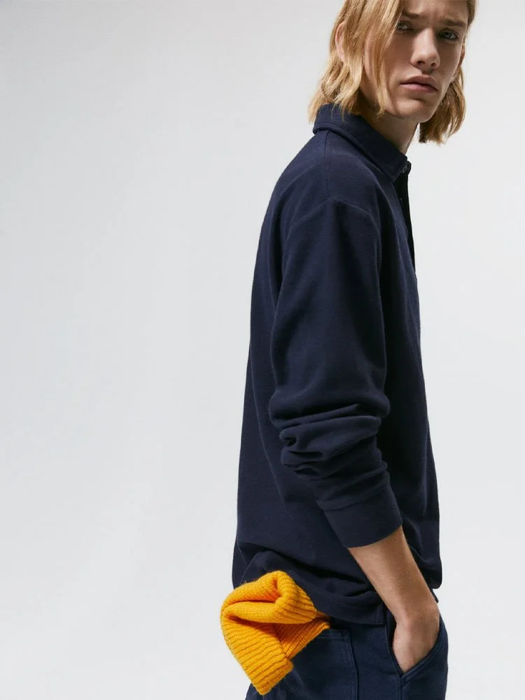 Polo de cuello son solapa y cierre frontal de botones. Manga larga. Bajo con aberturas laterales.