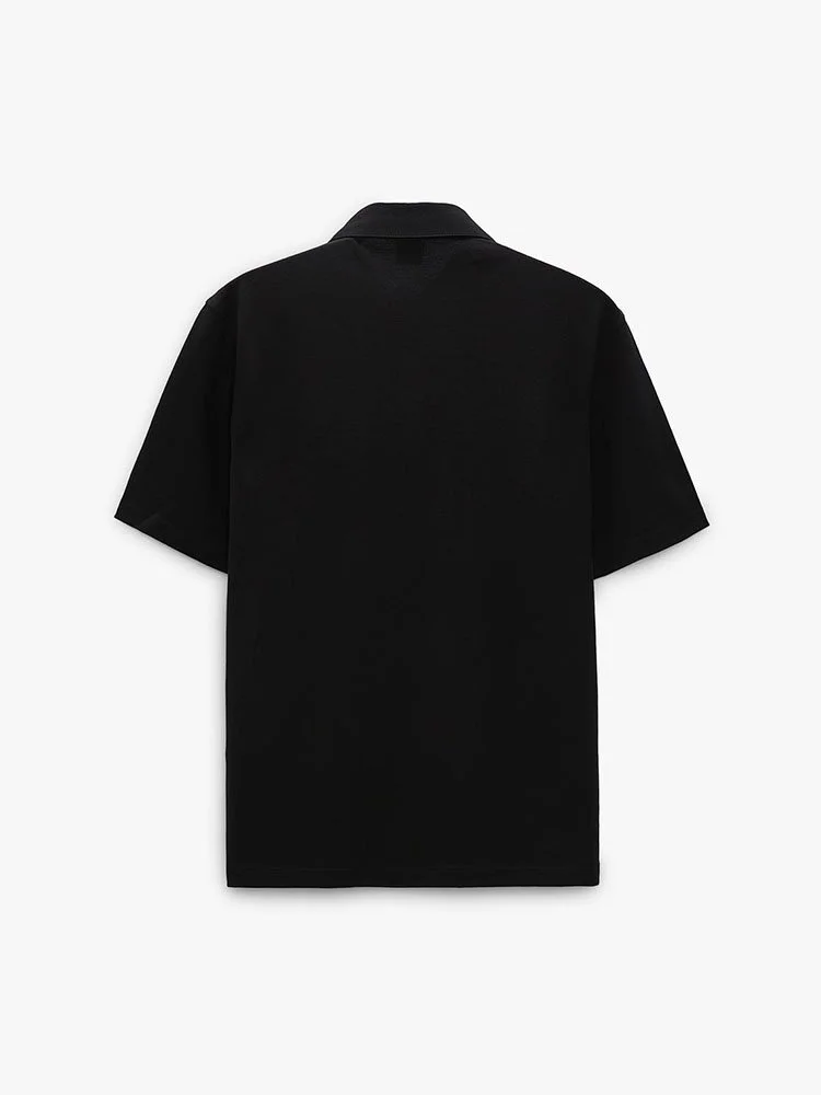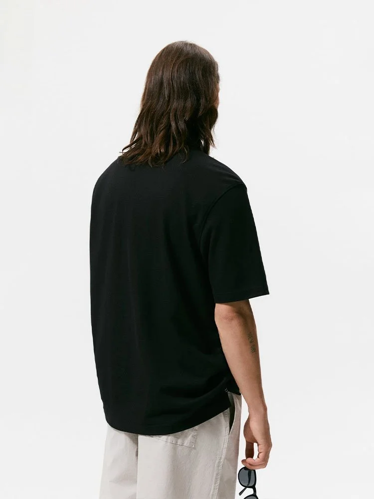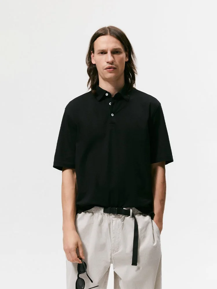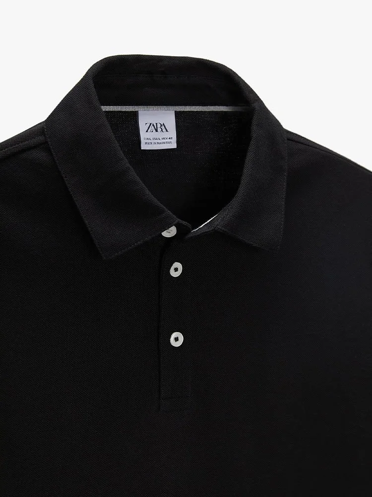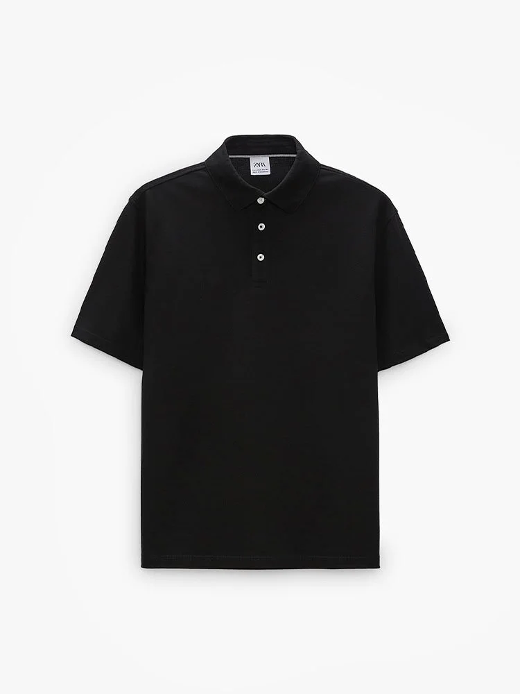 Chemise confeccionado en tejido de algodón con estructura piqué. Cuello polo y manga corta acabada en rib. Bajo con aberturas laterales. Cierre frontal con botones.