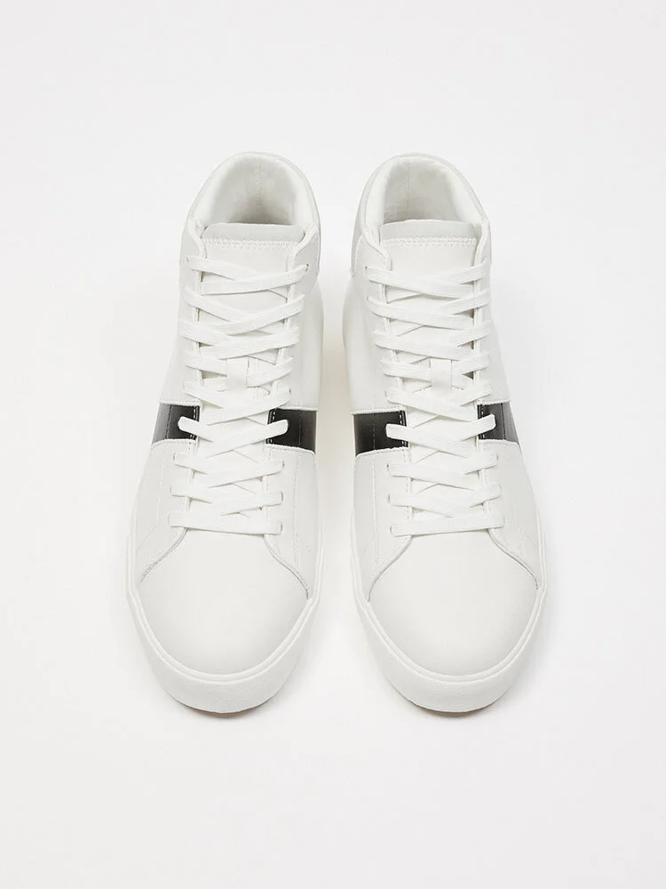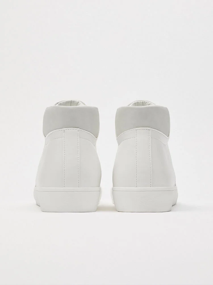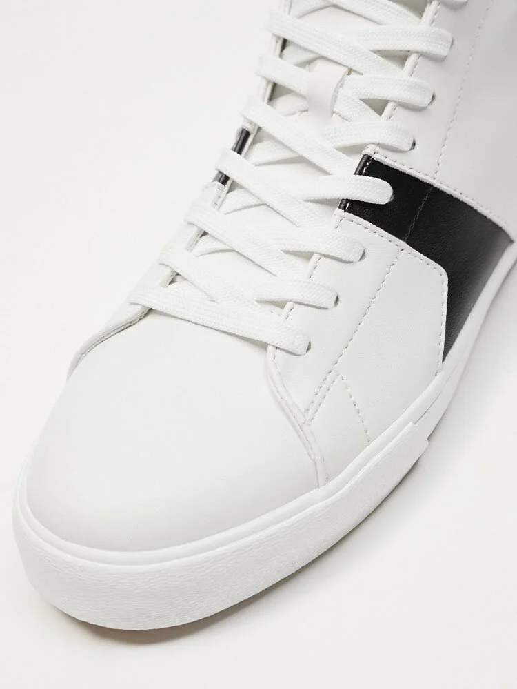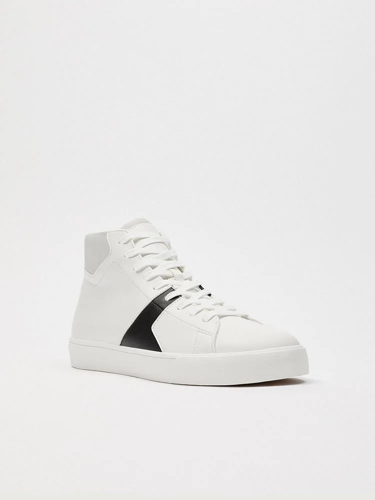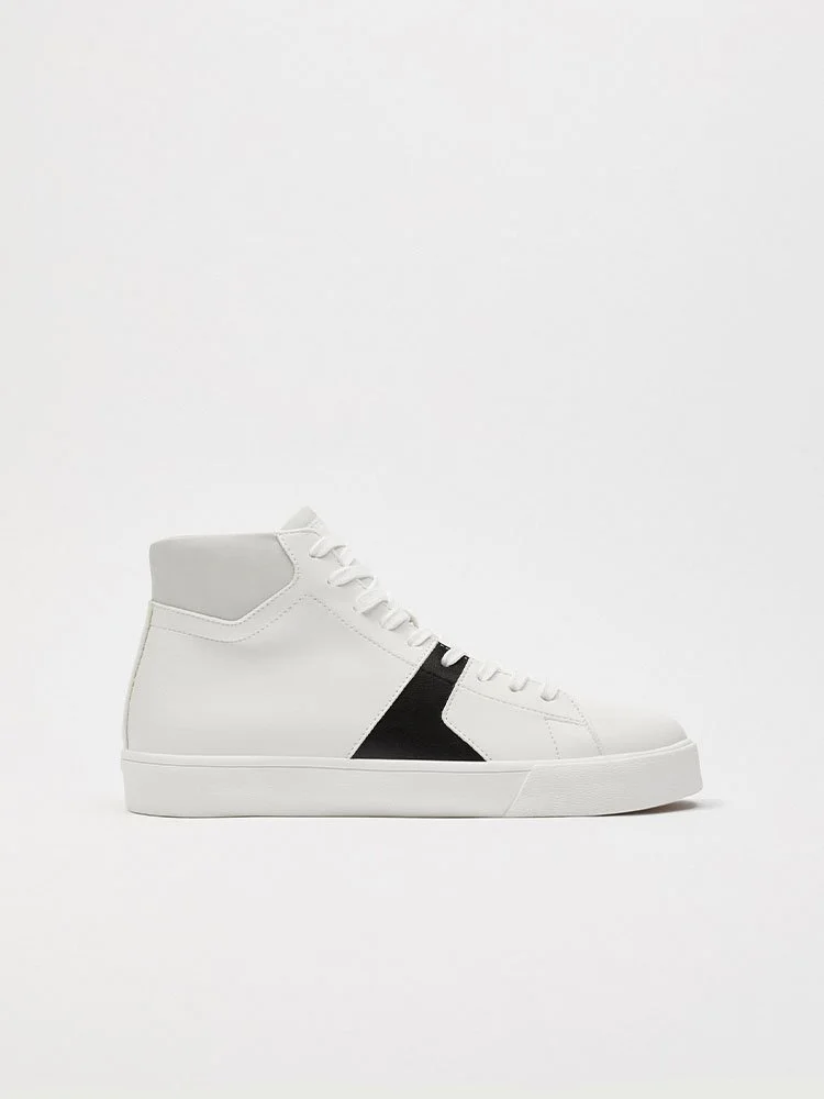 Botín deportivo con detalle de pieza en contraste de color y material en la parte trasera. Cordonera con nueve pasados y suela en blanco.