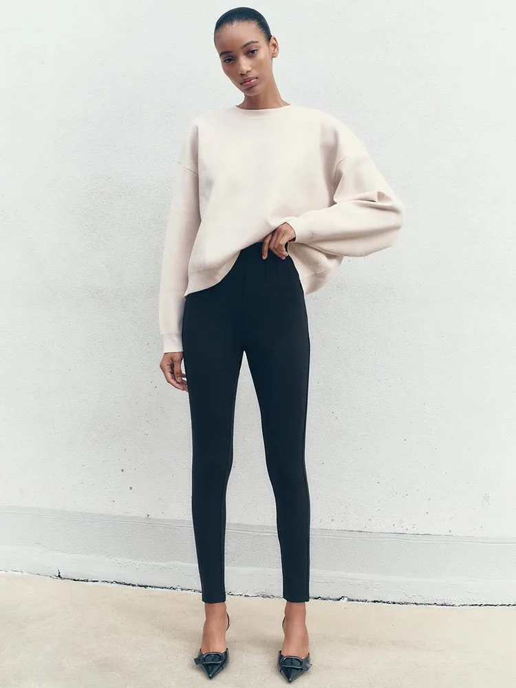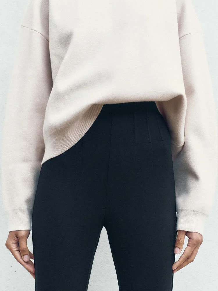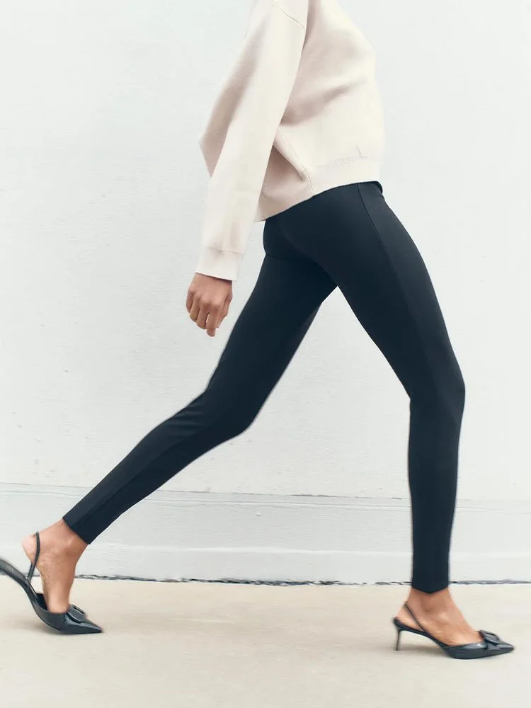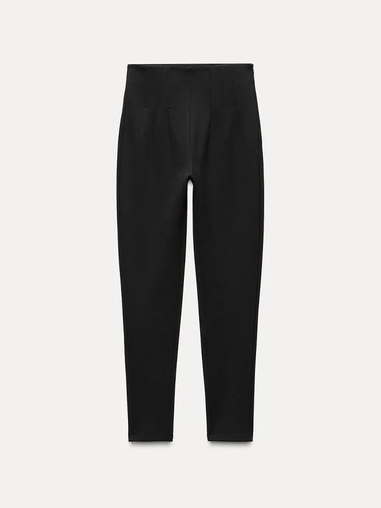 Leggings de tiro alto con efecto reductor que realza y estiliza la figura. Varillas interiores en cintura ocultas para un mayor efecto plano. Cierre lateral con cremallera oculta en costura.