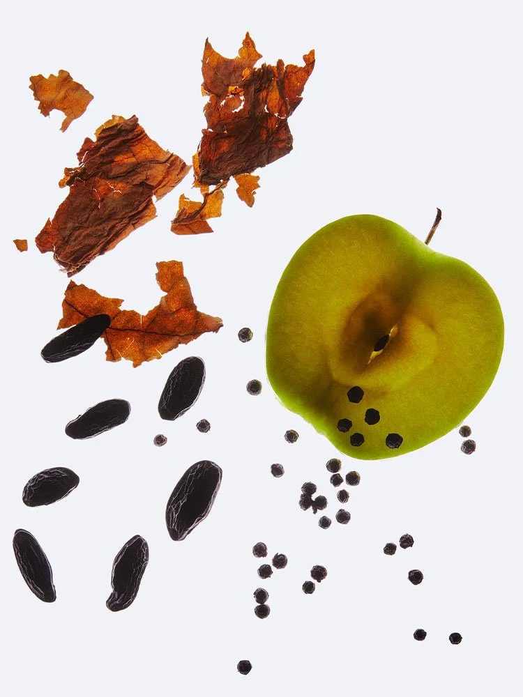 La pirámide olfativa incluye notas de manzana, pimienta negra y haba tonka. Es una fragancia elegante, cálida e intensa.