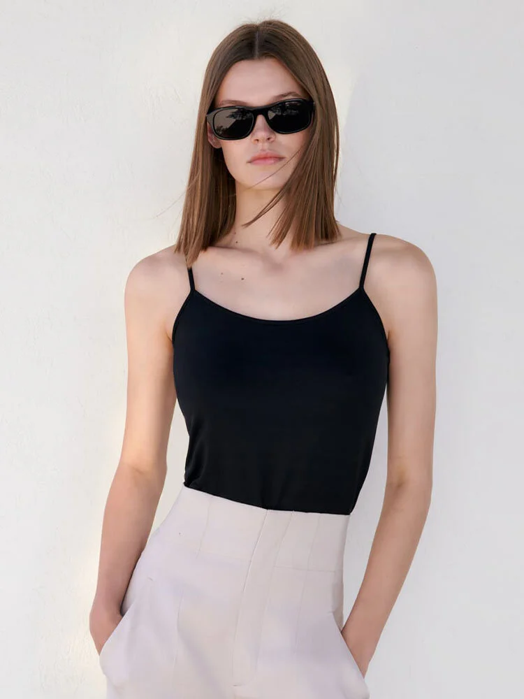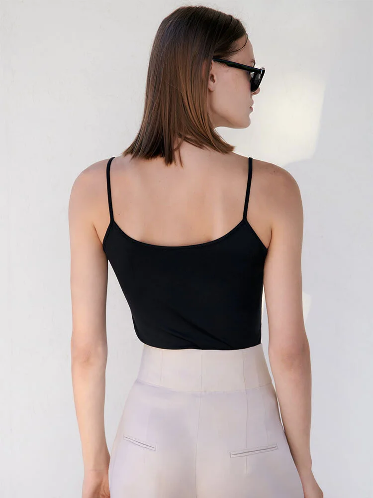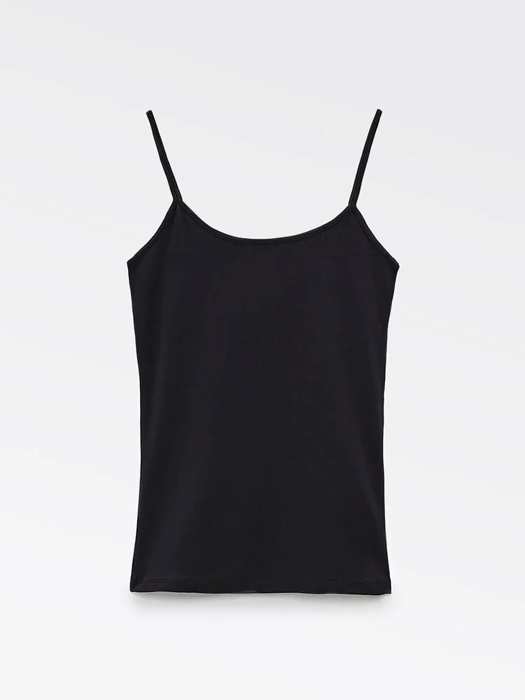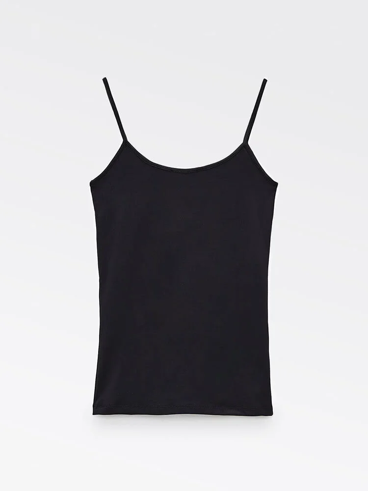 Top ajustado en mezcla de poliamida. Con escote redondo y correas.