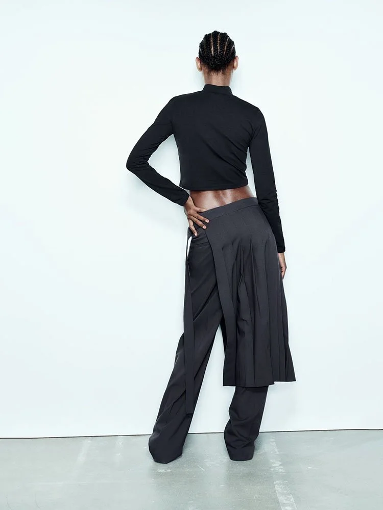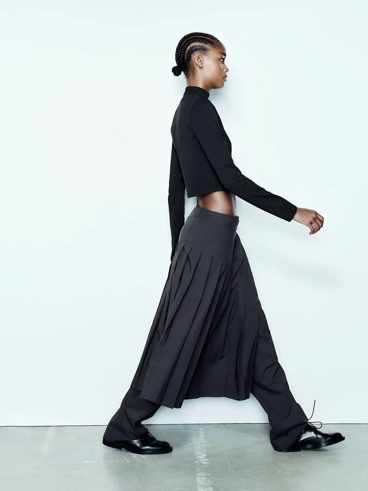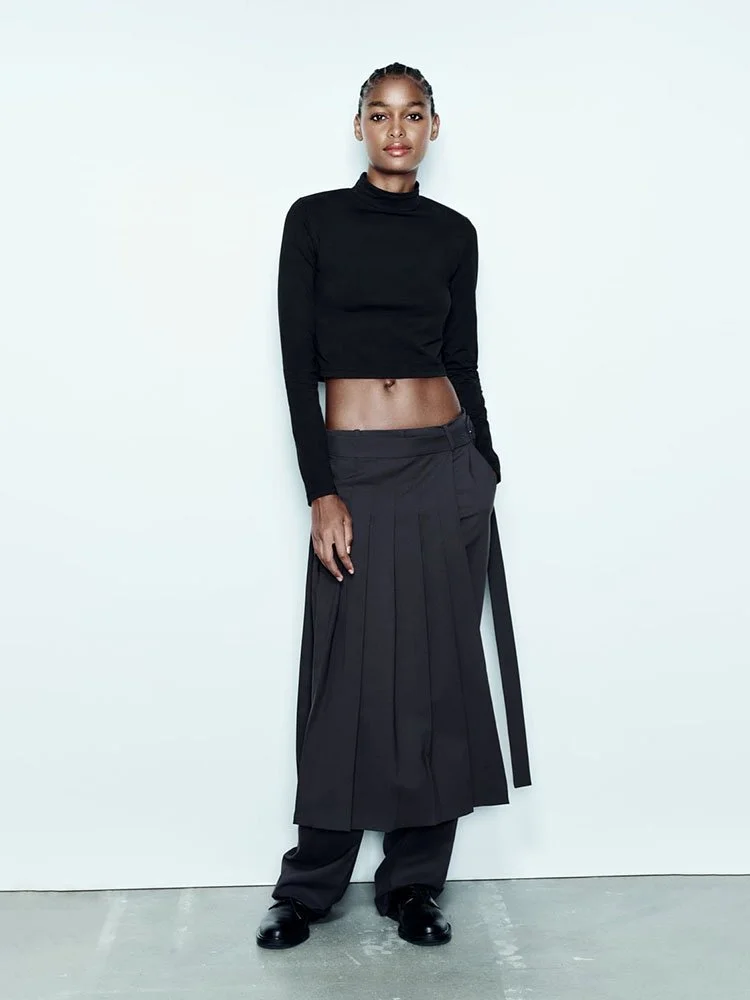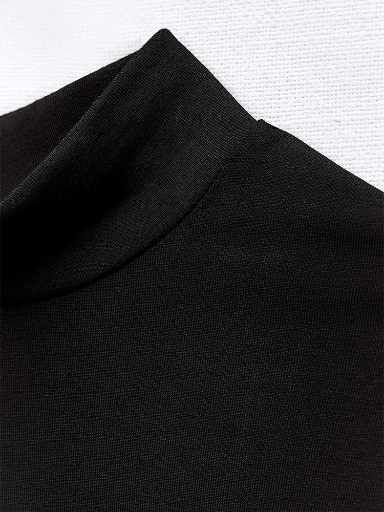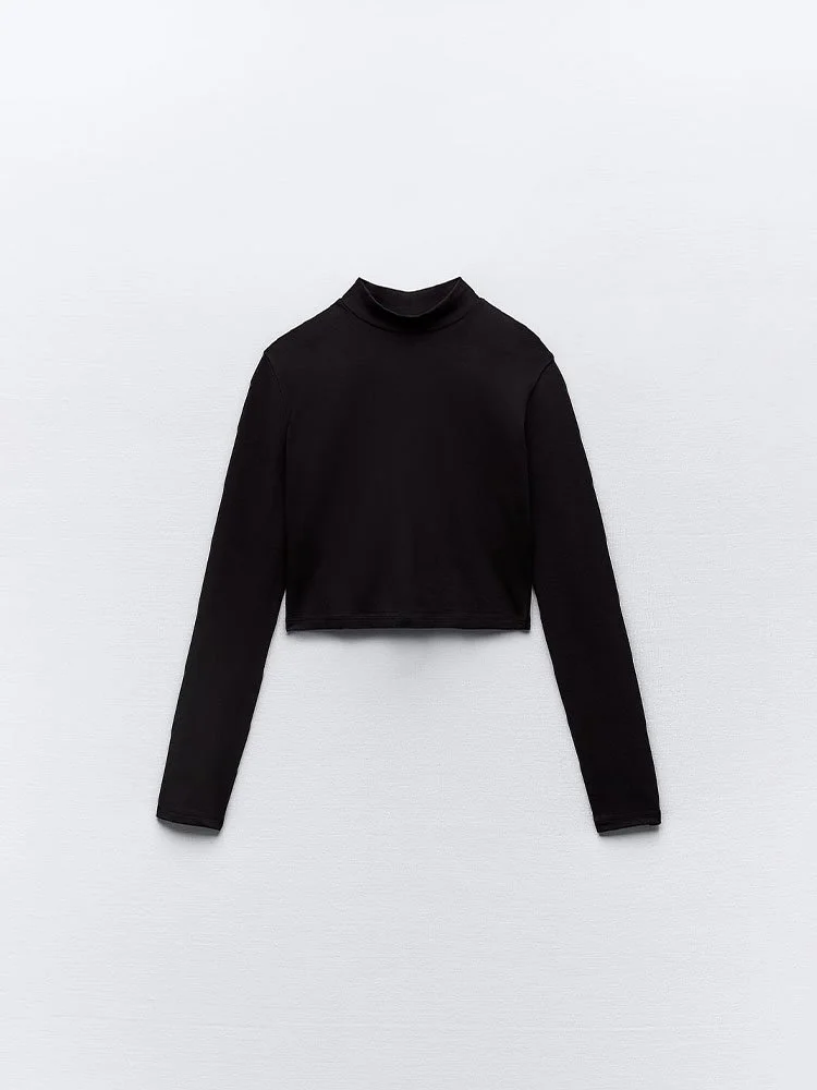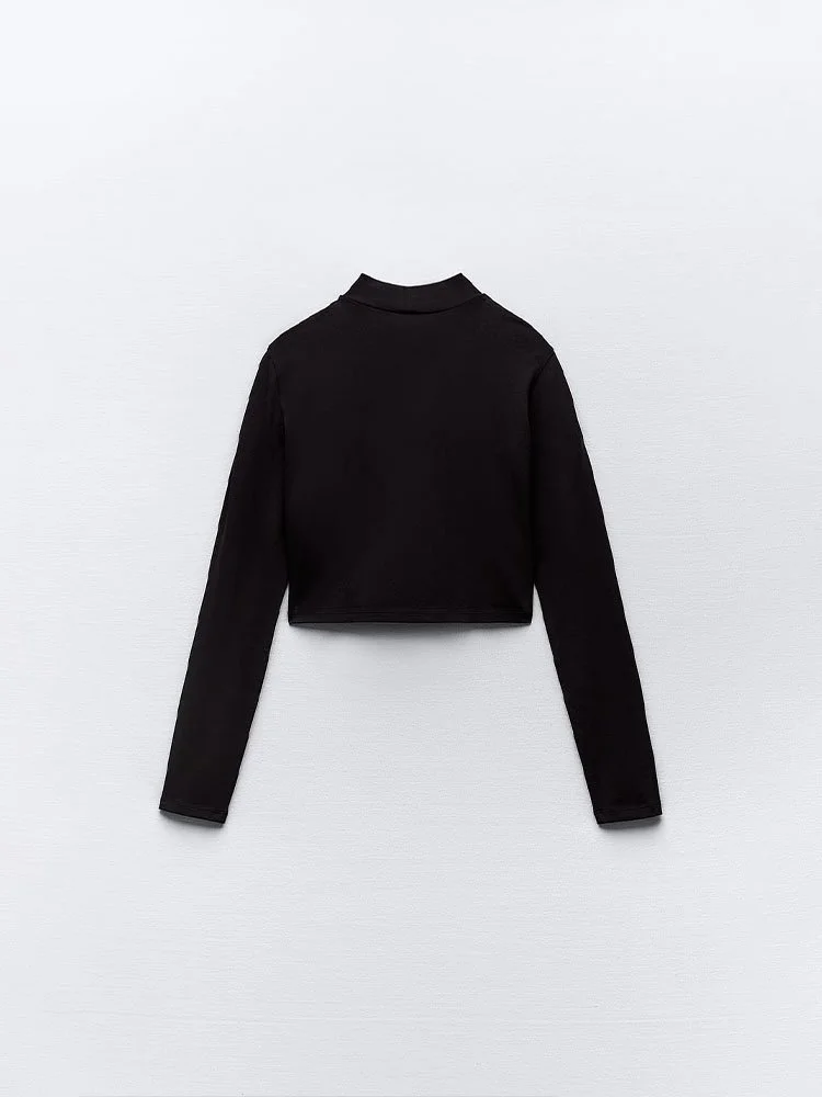 Top corto confeccionado con tejido en mezcla de algodón. Cuello alto y manga larga.