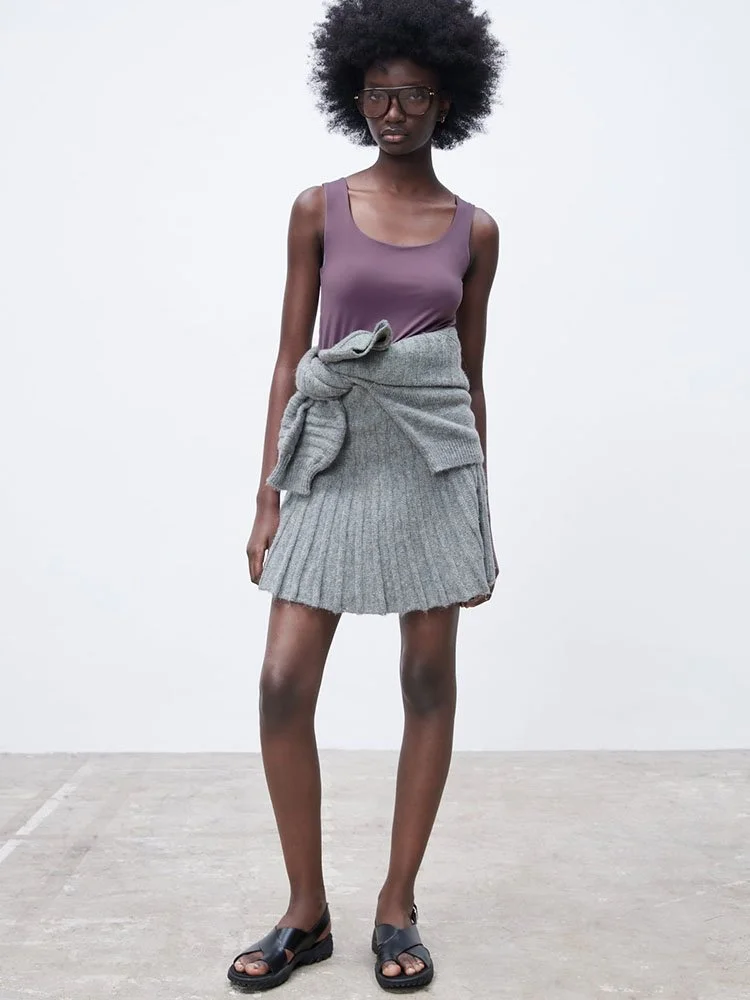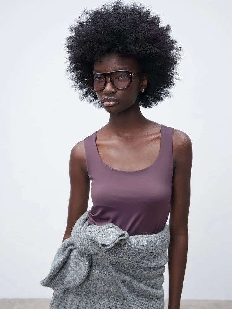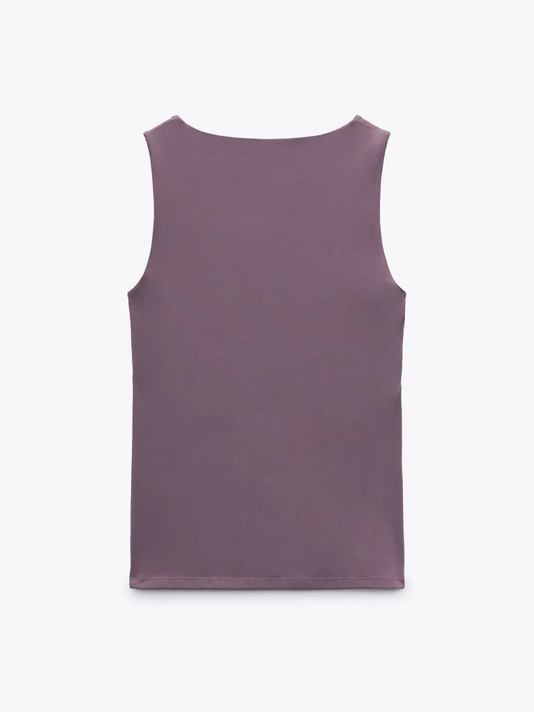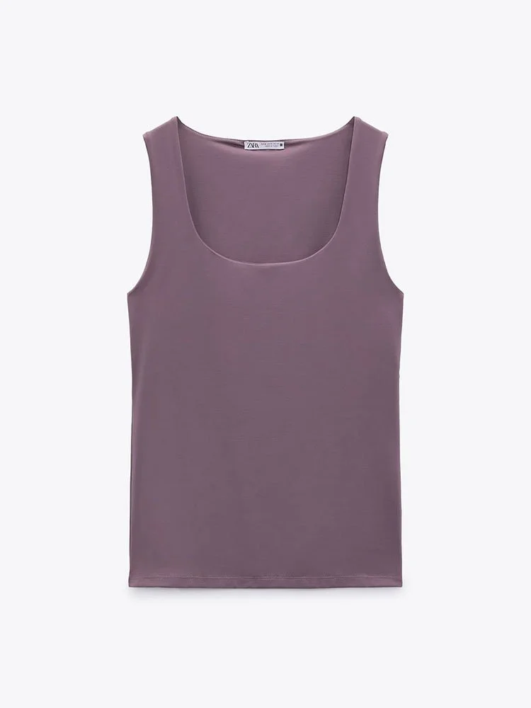 Top básico ajustado en mezcla de poliamida con tirante ancho y refuerzo en pecho.