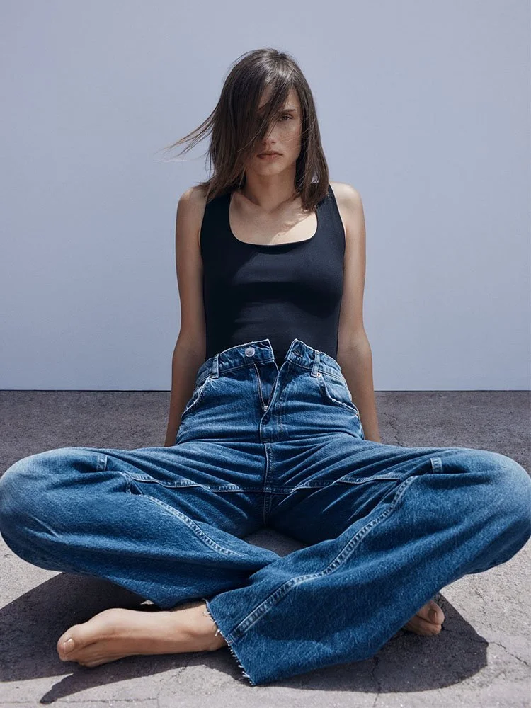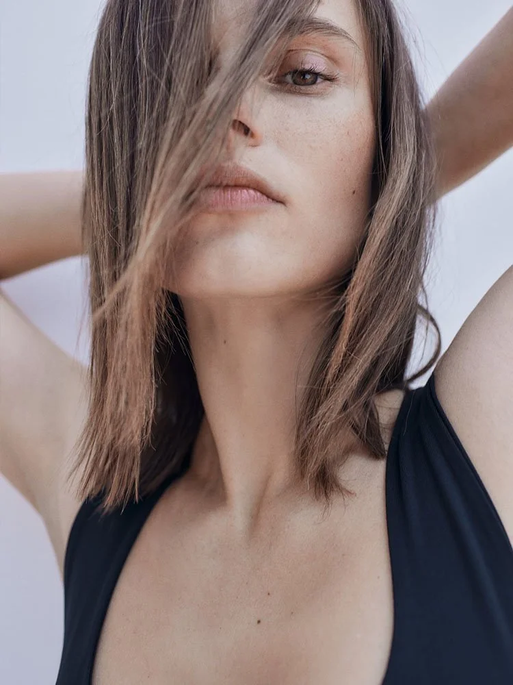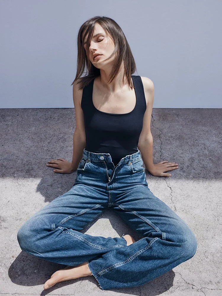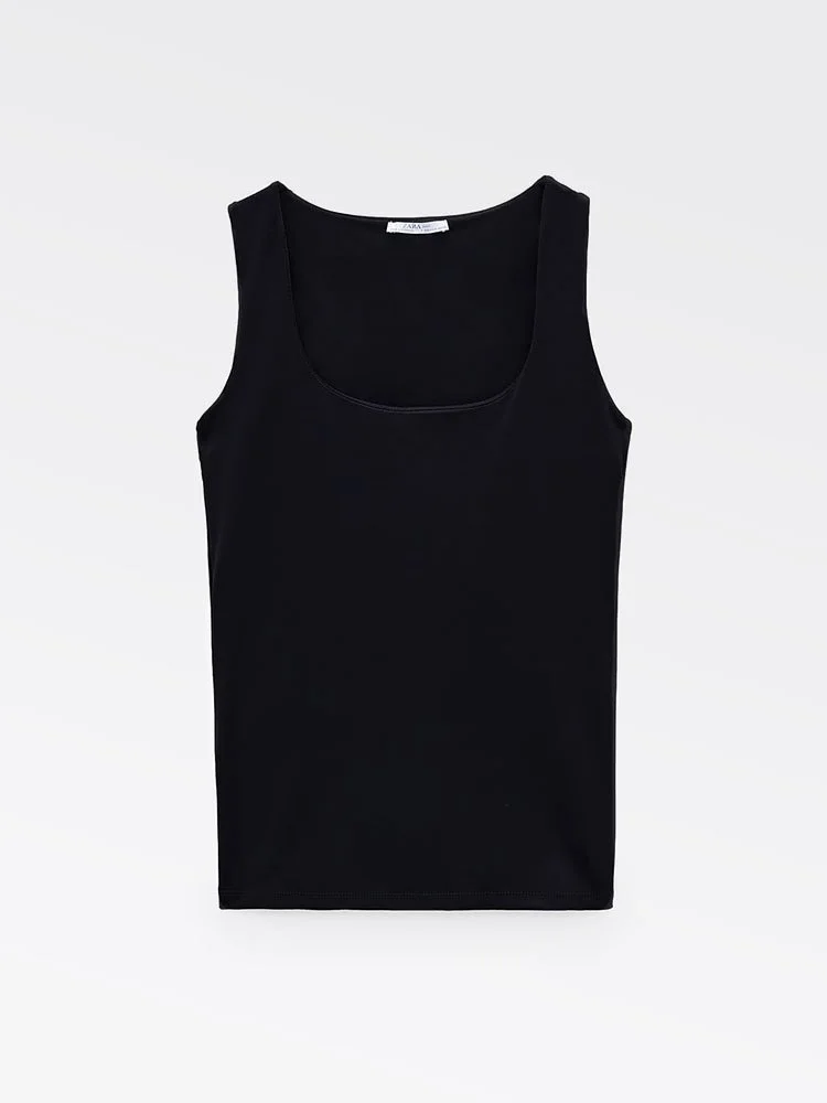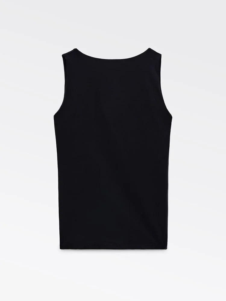 Top básico ajustado en mezcla de poliamida con tirante ancho y refuerzo en pecho.